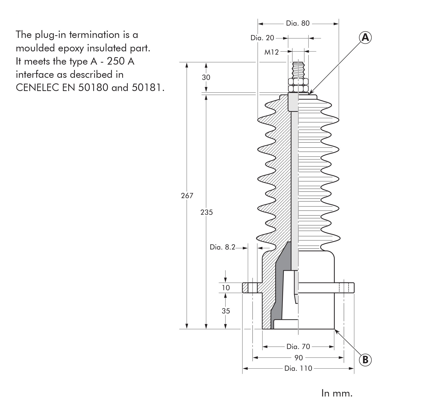 Separable termination designed to connect overhead lines or bus bars to equipment. Is suitable for indoor and outdoor use for medium polluted atmosphere.