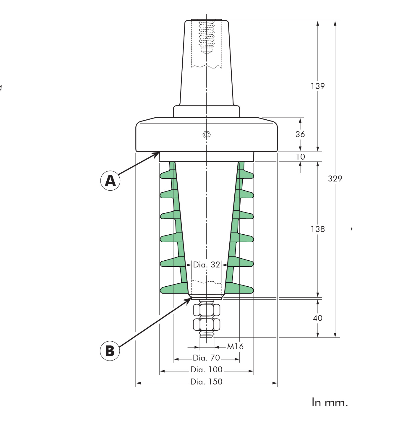 Equipment bushing for interface C2. Up to 24 kV, 1250 A.