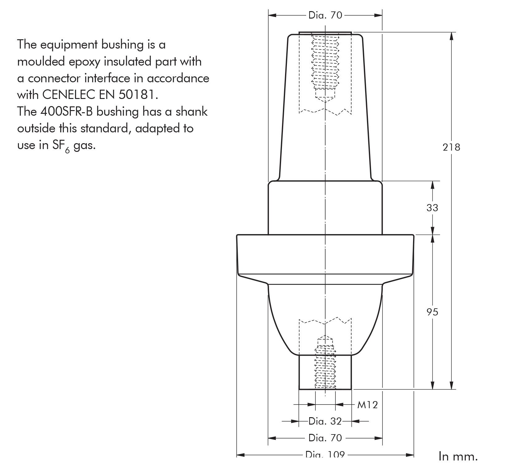 Equipment bushings connector for interface C. Up to 36 kV, 1250 A.