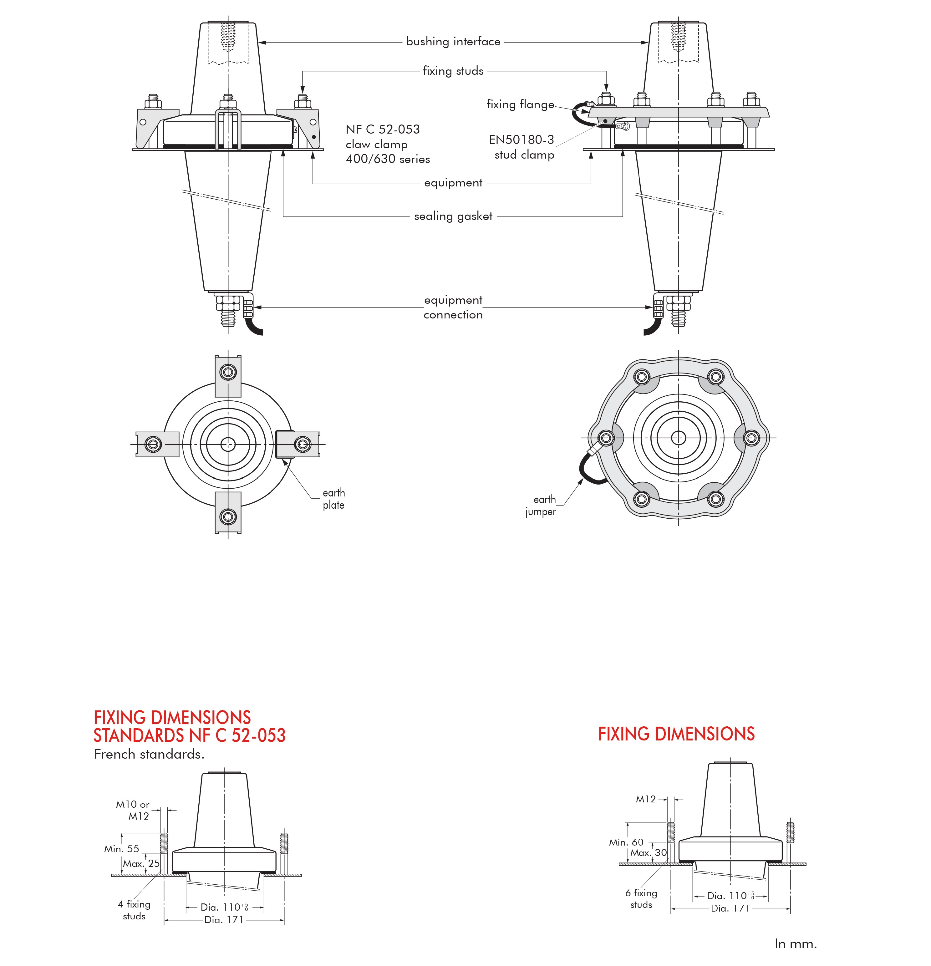 Equipment bushings connector for interface F. Up to 52 kV, 1250 A.