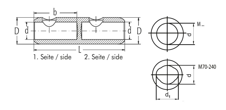 For the use of flexible copper conductors (Class 5) with the M/C series, an additional bolt set WS … CU-FLEX has to be used. By using the D series, cross-sections given in the selection table can be clamped with or without contact sleeve. A check on basis of the actual existing conductor dimensions by the user is indispensable. This applies also for the application of Class 6 conductors or other special conductors.