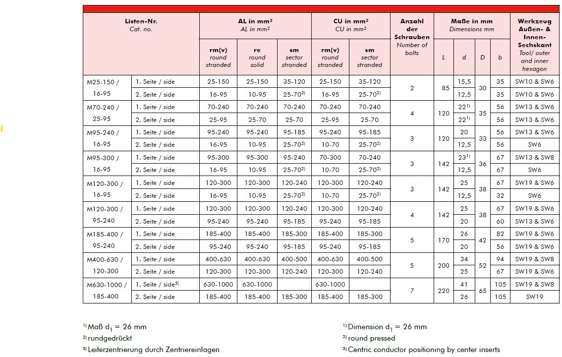 The products, described in this catalogue, are designed for connection of energy cable conductors (Class 1 & 2) with description of round solid (RE), round stranded (RM), as well as sector solid (SE), sector stranded (SM) and round stranded compacted (RMV) exclusively on