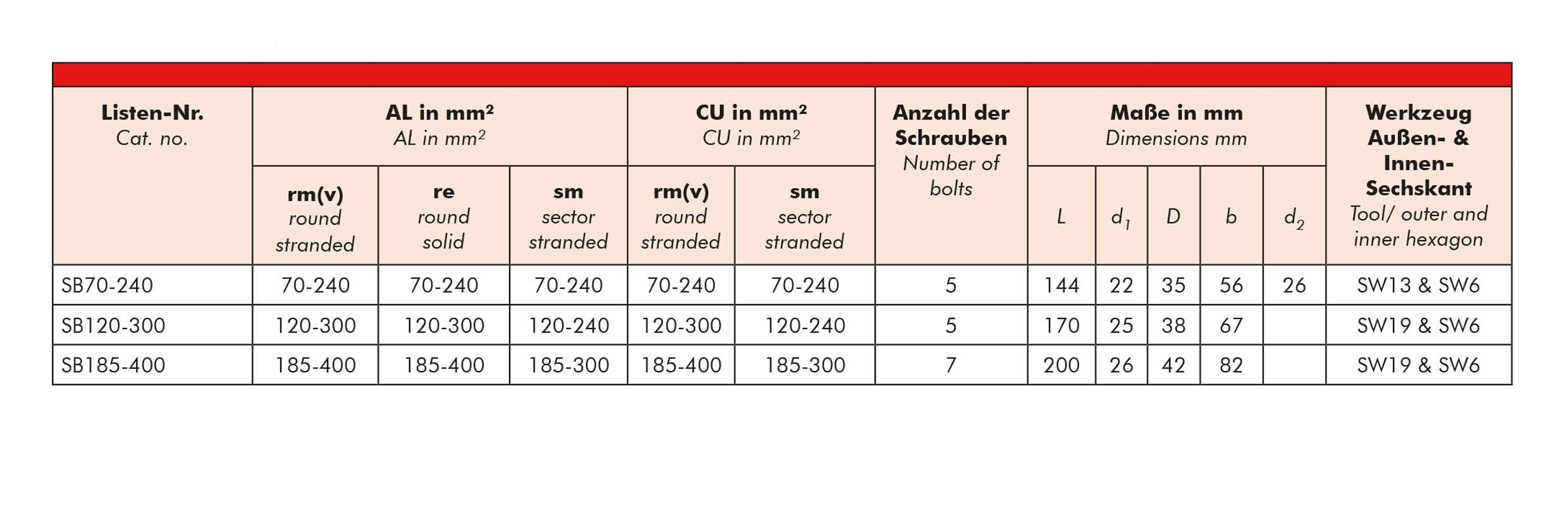 The products, described in this catalogue, are designed for connection of energy cable conductors (Class 1 & 2) with description of round solid (RE), round stranded (RM), as well as sector solid (SE), sector stranded (SM) and round stranded compacted (RMV) exclusively on