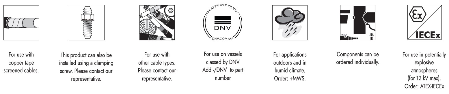 - (K) / (M) correspond respectively to connectors compatible for 24 kV / 36 kV voltages.