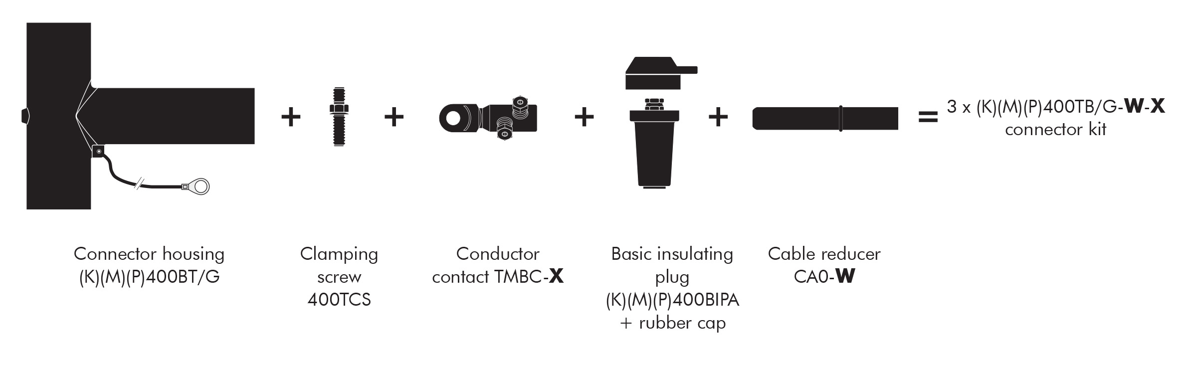 - (K) / (M) / (P) correspond respectively to connectors compatible for 24 kV / 36 kV / 42 kV voltages.