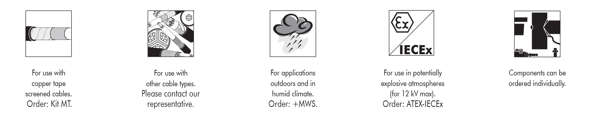 - (K) / (M) / (P) correspond respectively to connectors compatible for 24 kV / 36 kV / 42 kV voltages.