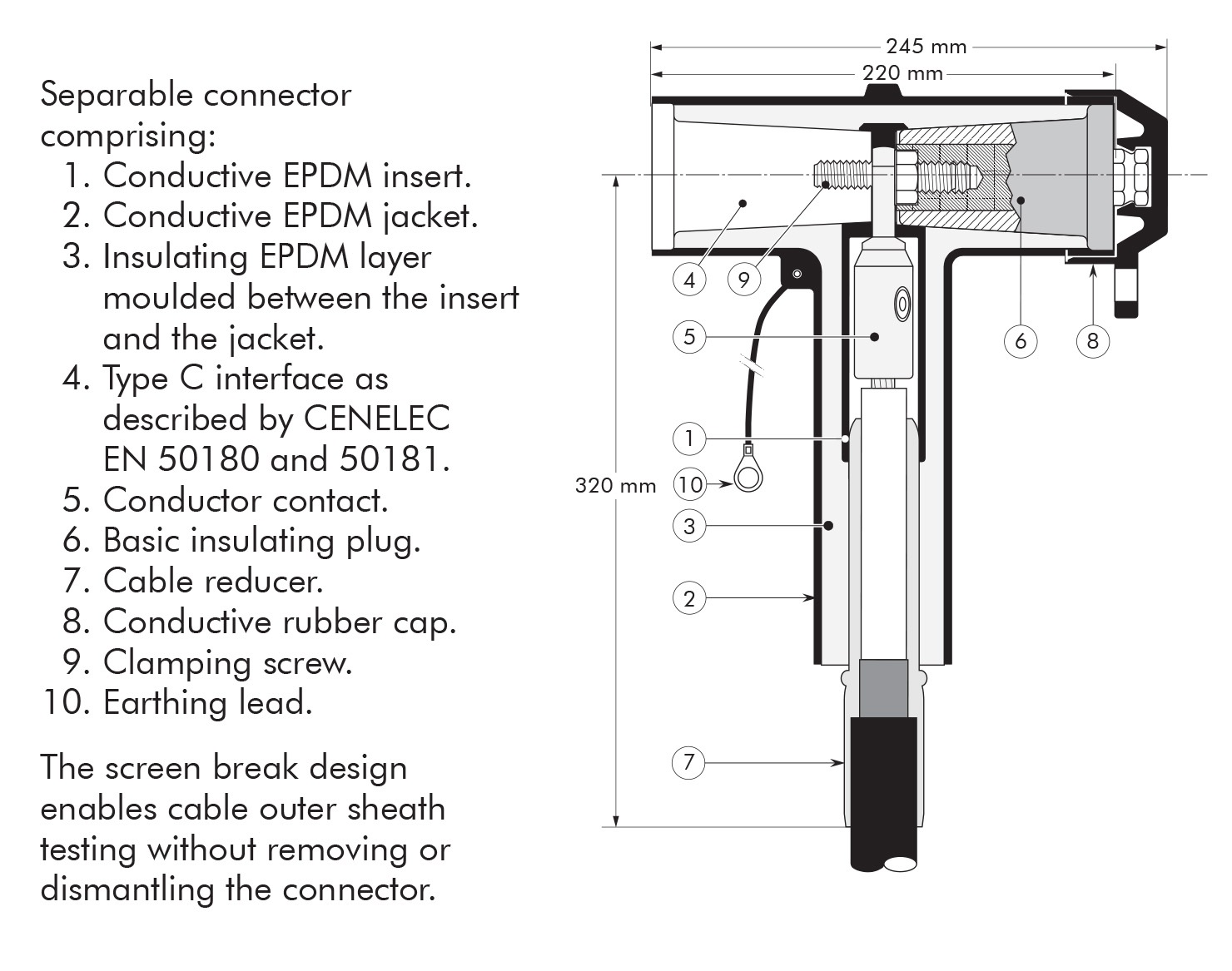 - Each separable connector is tested for AC withstand and partial discharge prior to leaving the factory.