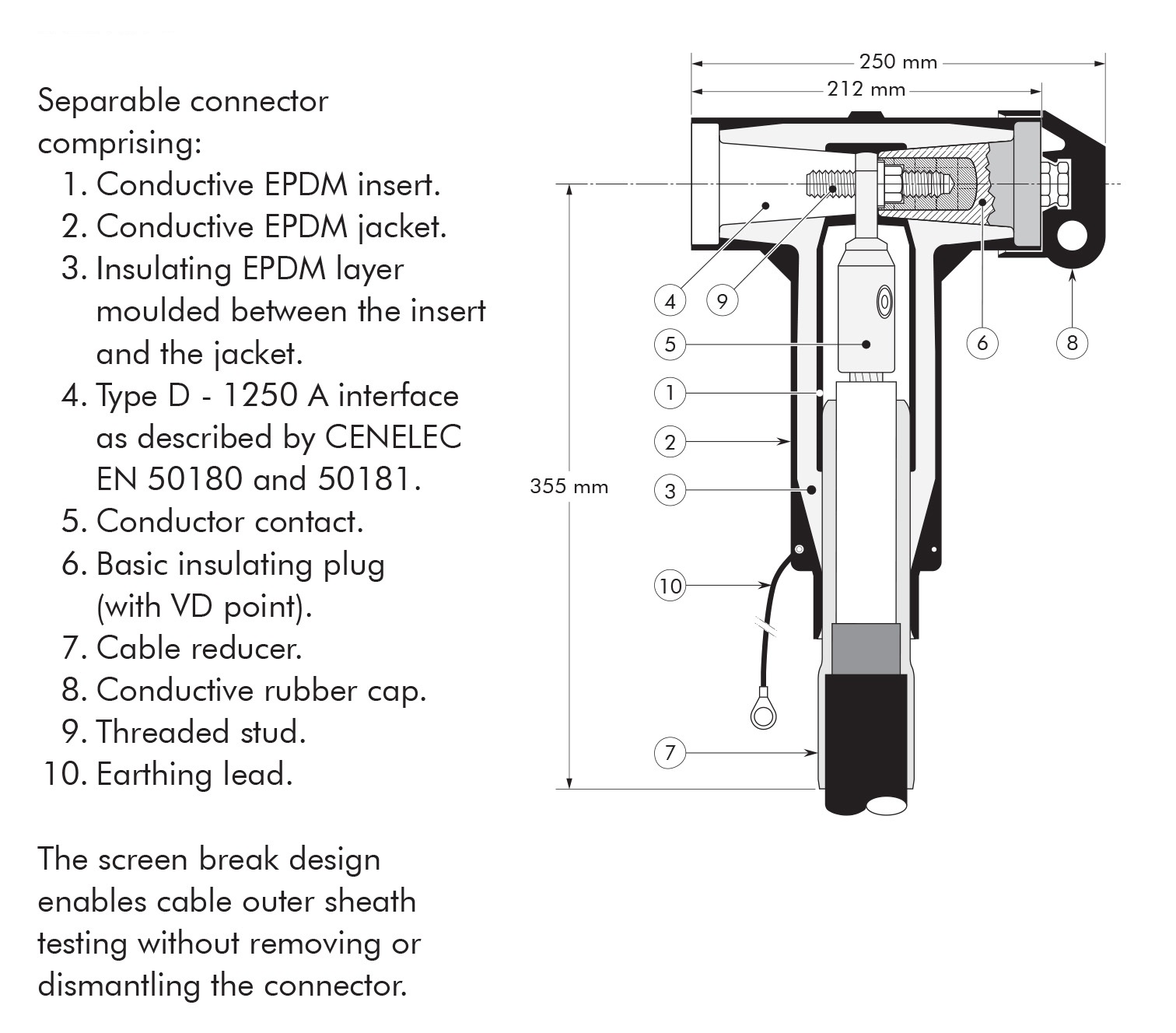 - Each separable connector is tested for AC withstand and partial discharge prior to leaving the factory.