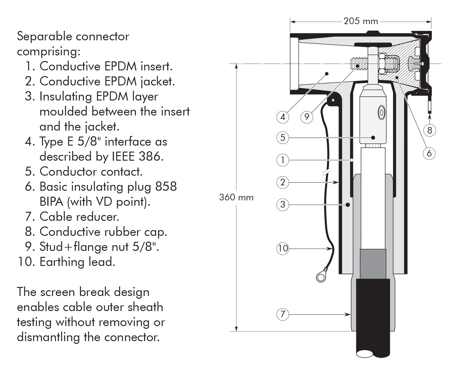 - Each separable connector is tested for AC withstand and partial discharge prior to leaving the factory.