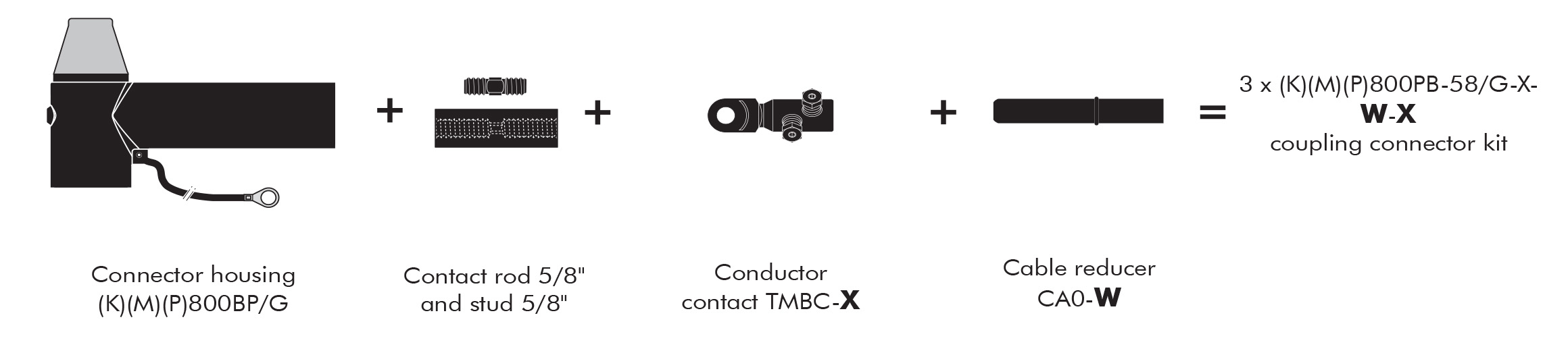 - (K) / (M) / (P) correspond respectively to connectors compatible for 24 kV / 36 kV / 42 kV voltages.