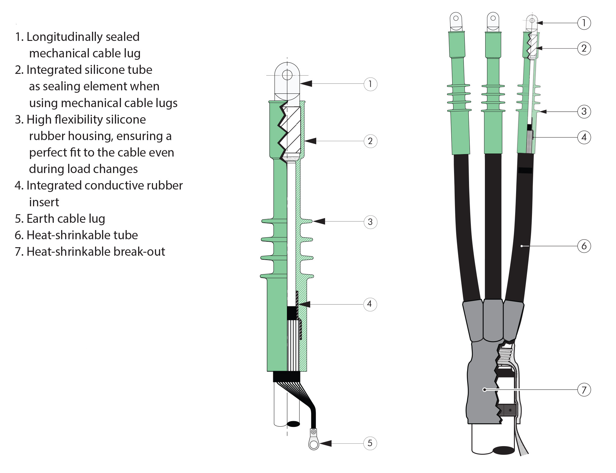 This termination is suitable for indoor installation on polymeric insulated medium voltage cables with extruded easy strip conductive screen or bonded extruded conductive screen.